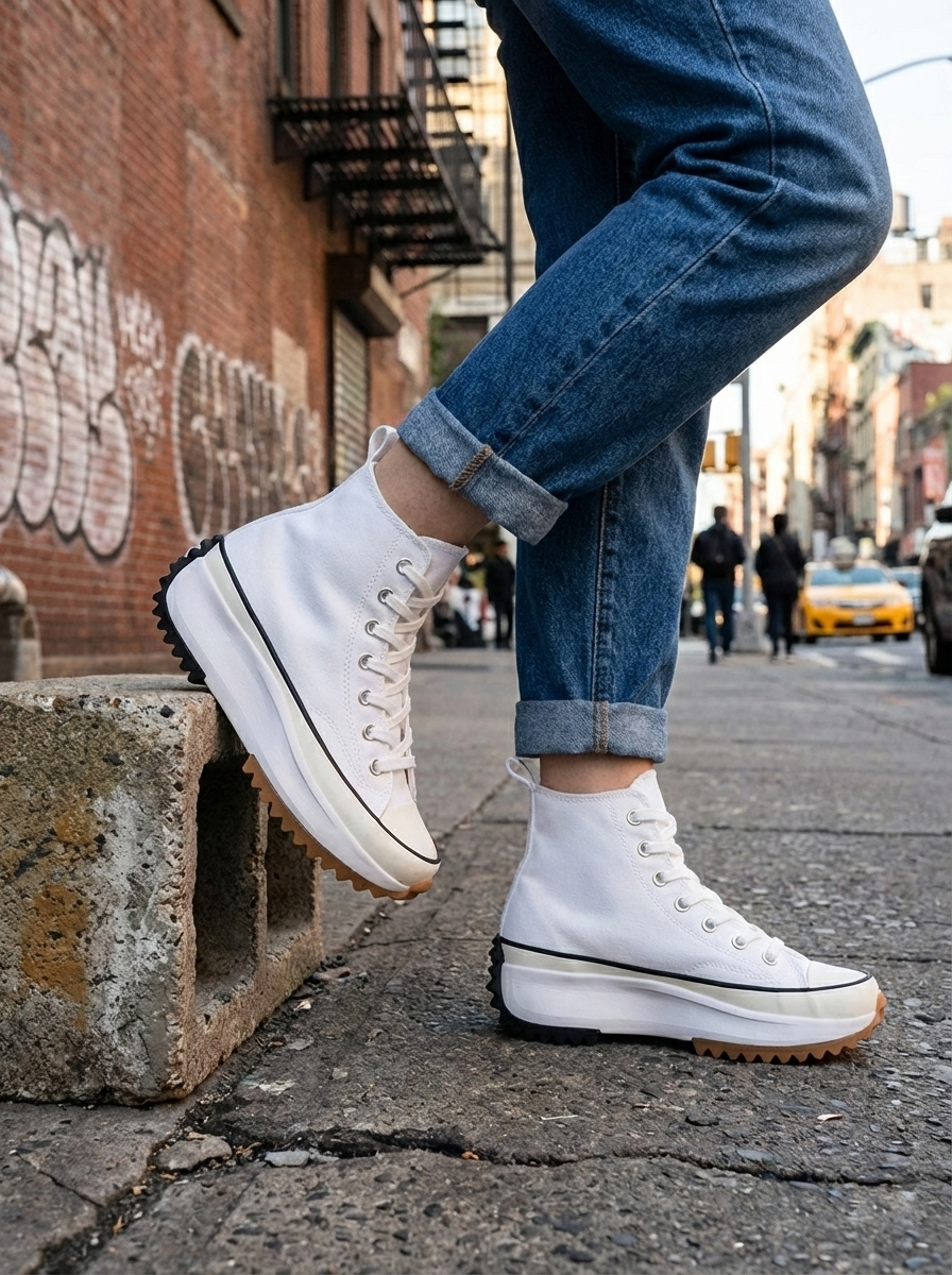 Estilo: Ideales para combinar con jeans enrollados (como se ve en las fotos), faldas o vestidos, adaptándose a un estilo urbano y streetwear.