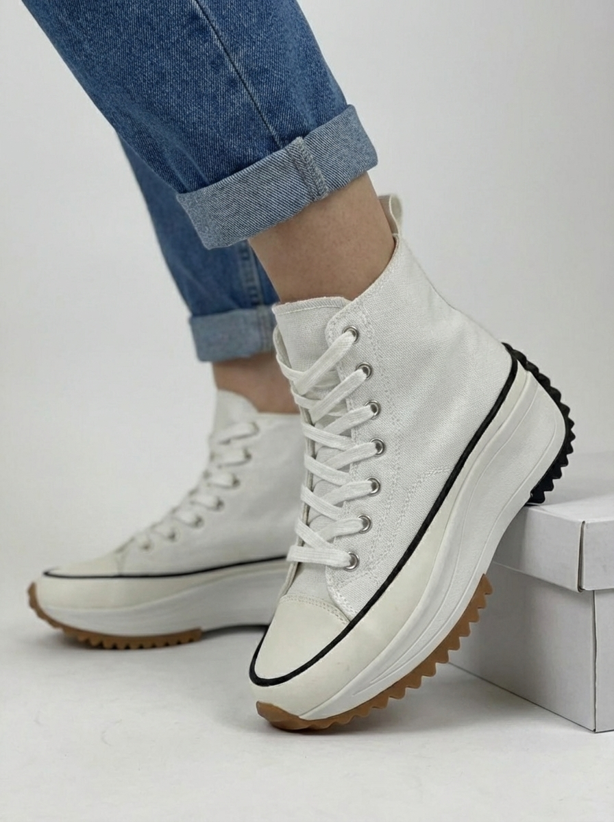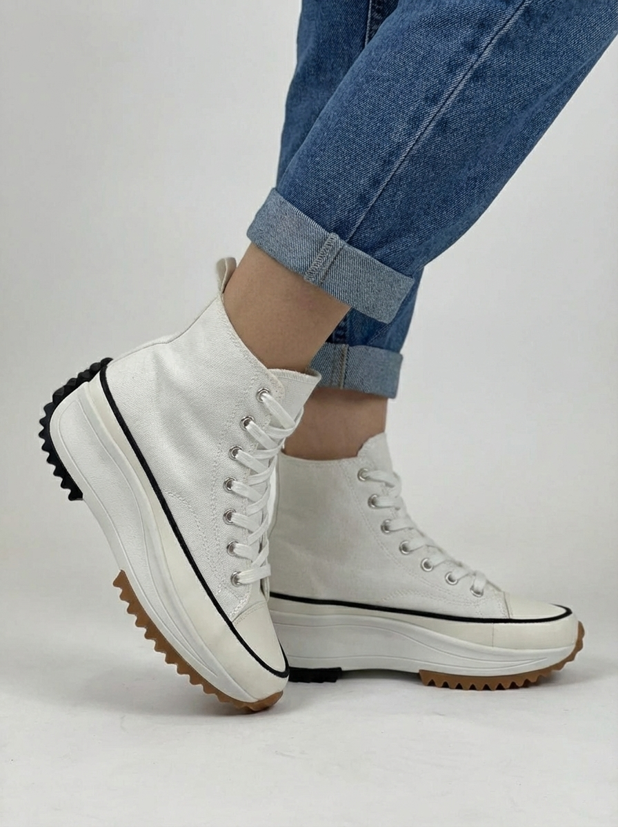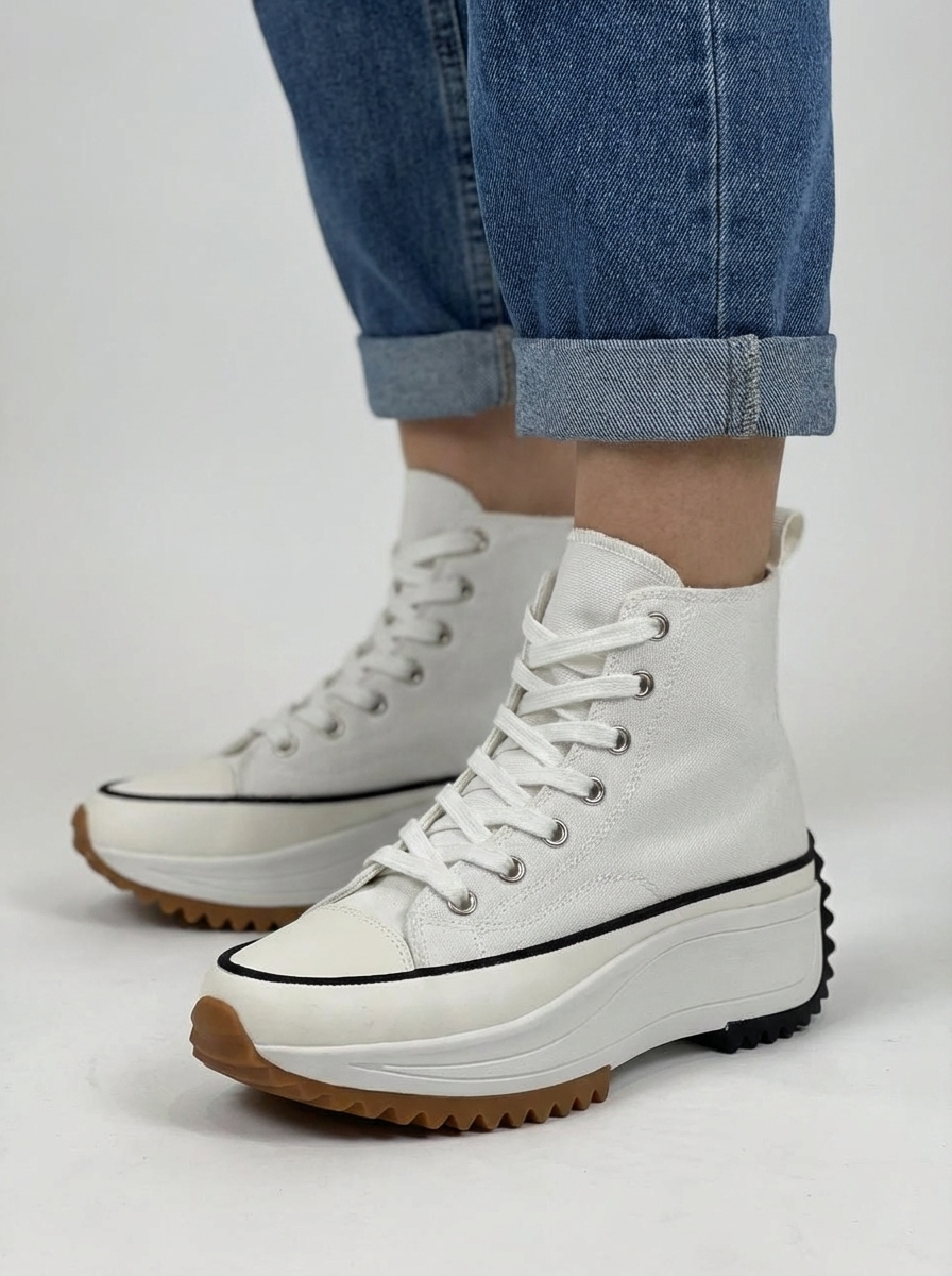👟 Zapatillas de Lona Blancas con Plataforma Estilo Bota
