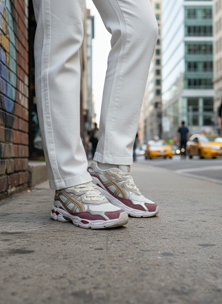 Detalles Neutros: El uso de tonos beige y crema en los cordones, la lengüeta y algunos ribetes asegura que el color vino se mantenga como el foco principal, creando un balance perfecto.