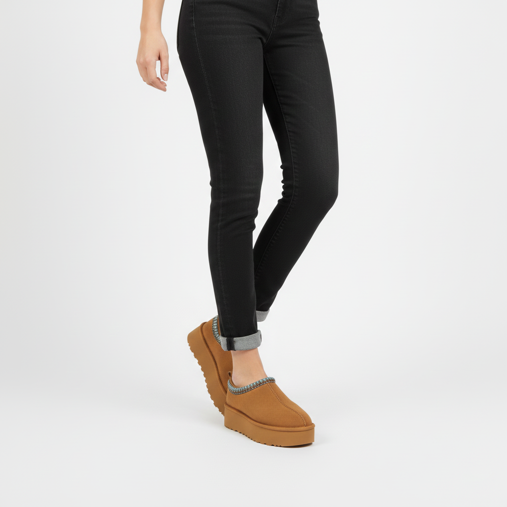 El HAZEL CAMEL CON FORRO es un zueco de plataforma que equilibra estética contemporánea con practicidad. Elaborado en ante sintético de textura suave, ofrece un cálido tono camel que se adapta a múltiples estilos. La suela chunky con patrón dentado proporciona tracción segura y estabilidad, mientras que la altura de plataforma añade presencia visual sin comprometer la comodidad. El ribete geométrico en la abertura superior introduce un elemento étnico que distingue este diseño del resto. El forro interior asegura calidez y confort prolongado. Un calzado versátil que trasciende la casualidad, perfecto para quien valora tanto el diseño como la funcionalidad en sus prendas.