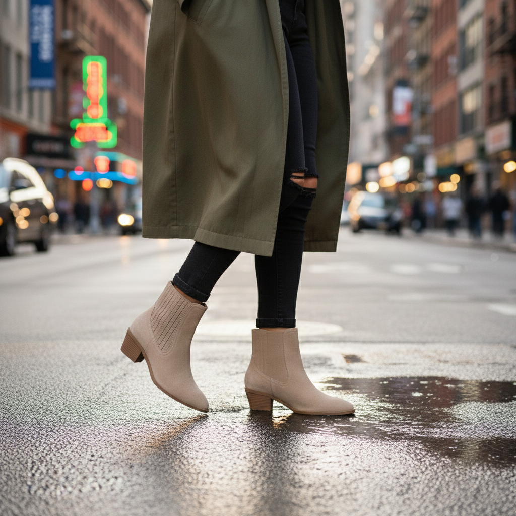 👢 Botín Estilo Chelsea / Vaquero Corto en Beige Nude