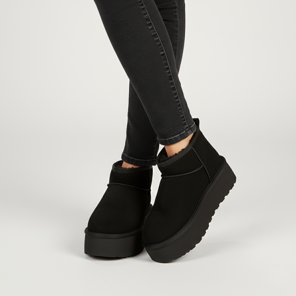 ¡Redefine el estilo de invierno con nuestros Botines de Plataforma Ultra Mini! Inspirados en el icónico diseño de bota corta, estos botines combinan la comodidad inigualable con una audaz suela de plataforma que te elevará a nuevas alturas de estilo.
