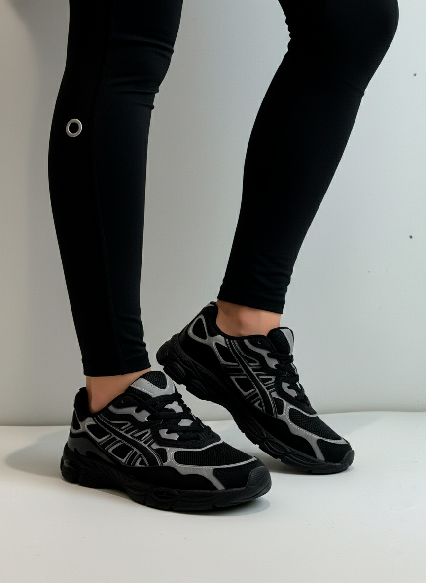 Diseño: Presentan un empeine de malla transpirable (en color gris y negro) combinado con superposiciones sintéticas para mayor soporte y durabilidad.