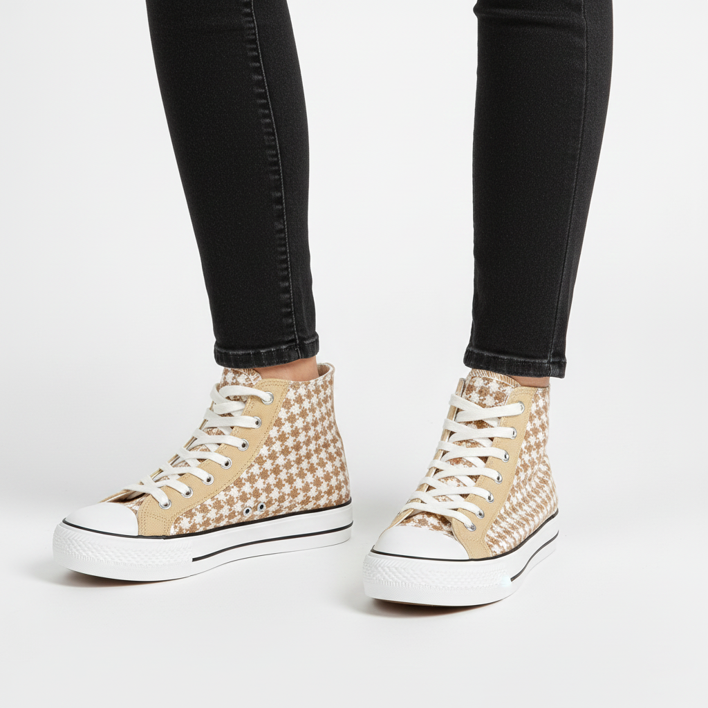 👟 Zapatillas Altas con Estampado de Pata de Gallo